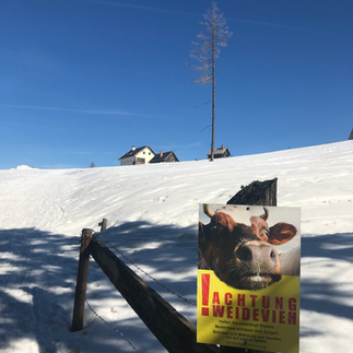 Vom Parkplatz am "Bärenkogelsattel" starten wir los. Im Schlepptau die Rodeln, die von den Betreibern des "Ganzalmhauses" gratis zur Verfügung gestellt werden. Damit soll uns der Abstieg versüsst werden. Wir sind gespannt und starten frohen Mutes den verschneiten und vereisten Forstweg entlang in Richtung "Windpark Pretul".